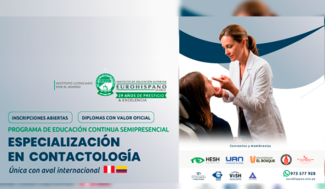 El Instituto Eurohispano, institución con 29 años de trayectoria y licenciada por el Ministerio de Educación del Perú, presentó su programa de Educación Continua Semipresencial en Especialización en Contactología, que iniciará el 2 de febrero y se desarrollará hasta el 22 de marzo. Las inscripciones estarán abiertas hasta el viernes 30 de enero, y el programa se realizará en Lima, Perú.