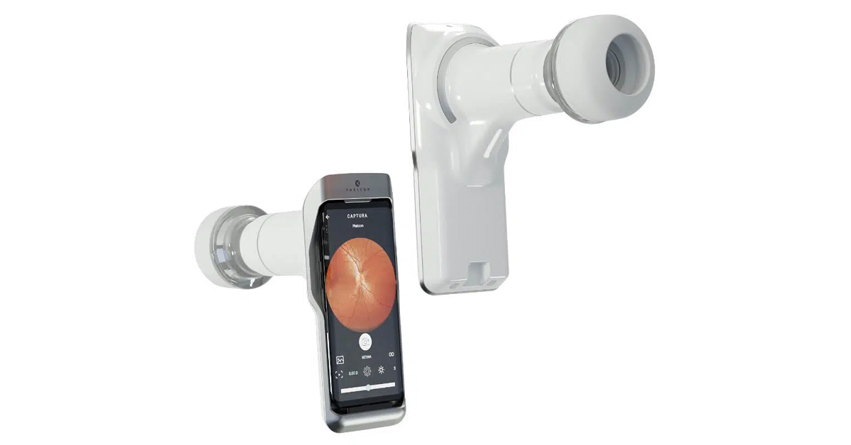 Es un dispositivo portátil integrado, que almacena las fotografías en la nube, lo que lo hace ideal para el diagnóstico remoto de patologías mediante telemedicina. Debido a su tamaño y portabilidad, se puede usar desde cualquier lugar, o en la comodidad del consultorio con un aditamento especial para su uso en lámpara de hendidura.
